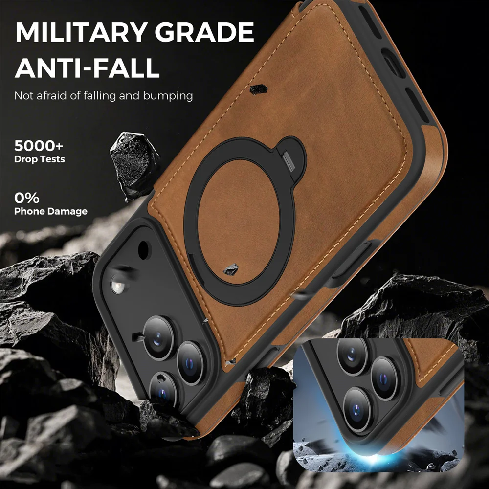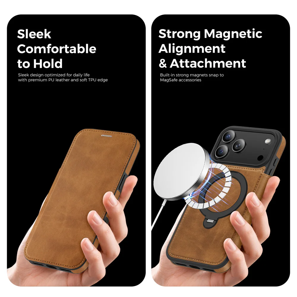 Upgrade your iPhone 17 protection with style and functionality. This MagSafe-compatible leather wallet case combines premium craftsmanship with smart features: