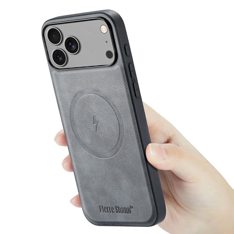 Give your iPhone 17 Series a premium upgrade with this leather magnetic case. Featuring built-in magnets for a strong MagSafe connection, it supports wireless charging while maintaining a slim profile. The high-quality leather finish provides a stylish look and a comfortable grip for daily use.