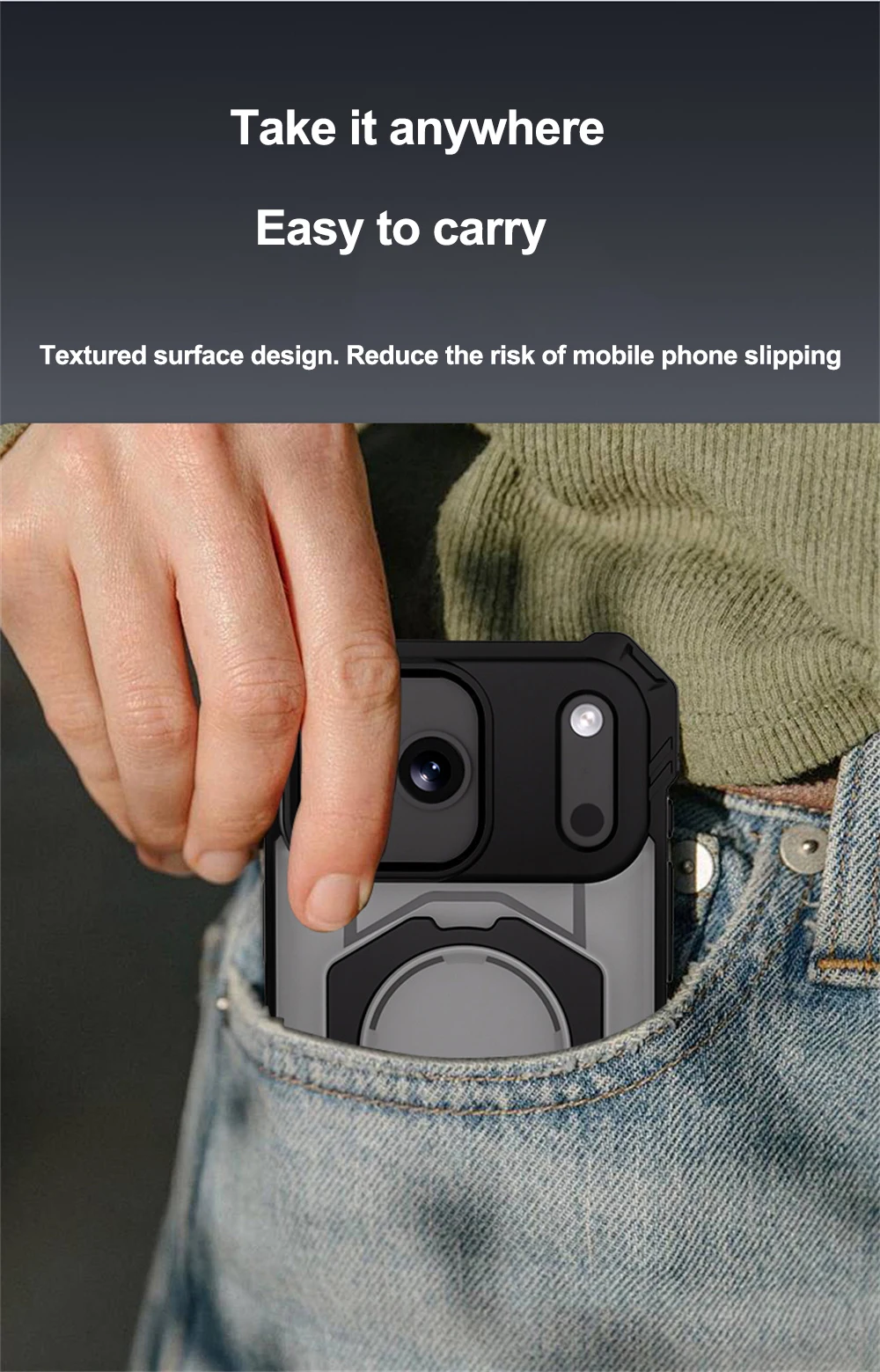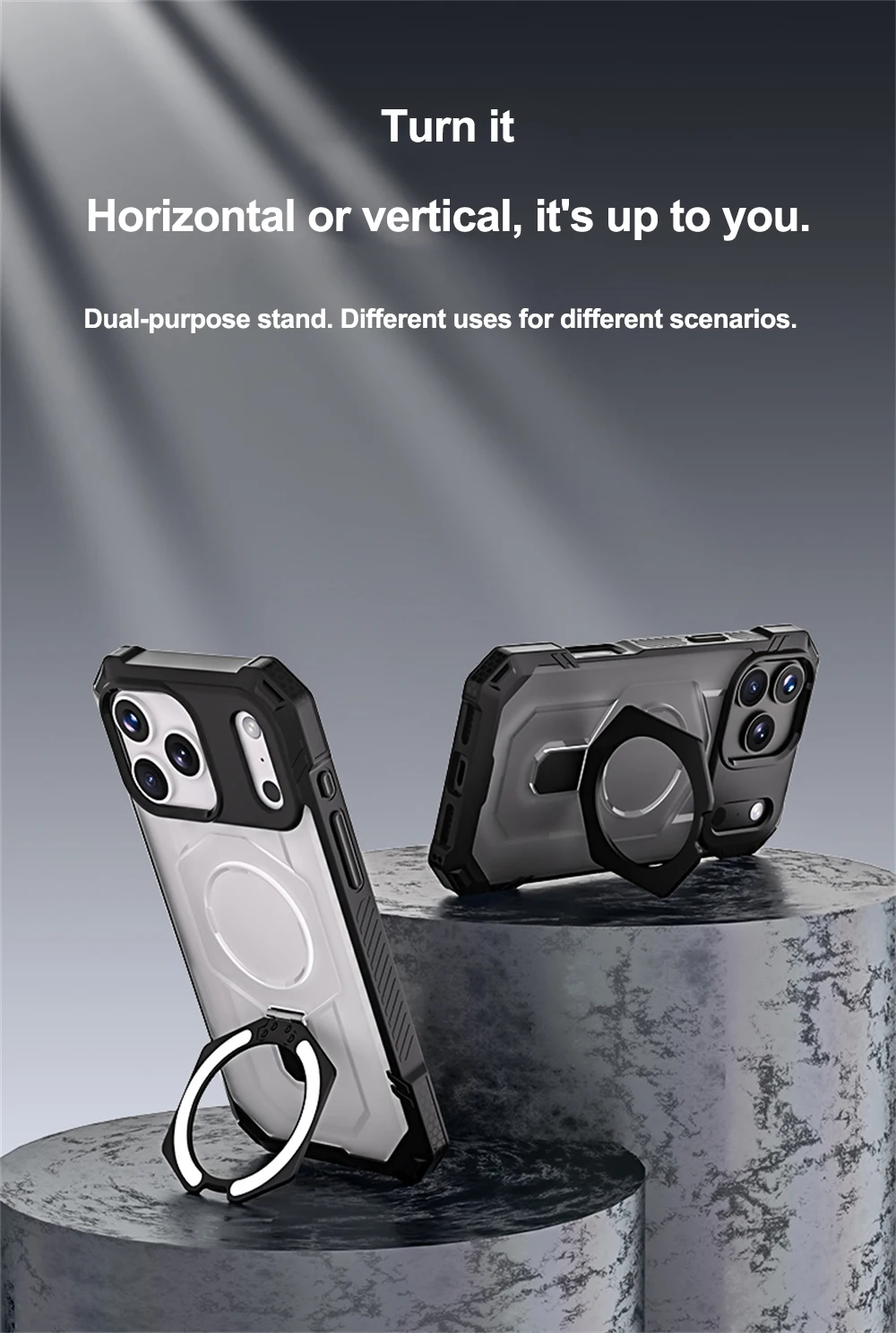 Keep your iPhone safe and functional with this rugged magnetic case. Built with a strong magnet for MagSafe charging, reinforced shockproof design, and a dual-purpose ring bracket, it’s perfect for both protection and convenience.
